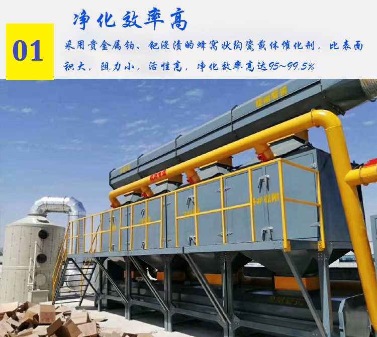 催化燃燒器裝填的催化劑,具有阻力小,活性高,穩(wěn)定性好,凈化效率高達(dá)95 ~ 99.5%,無二次污染。